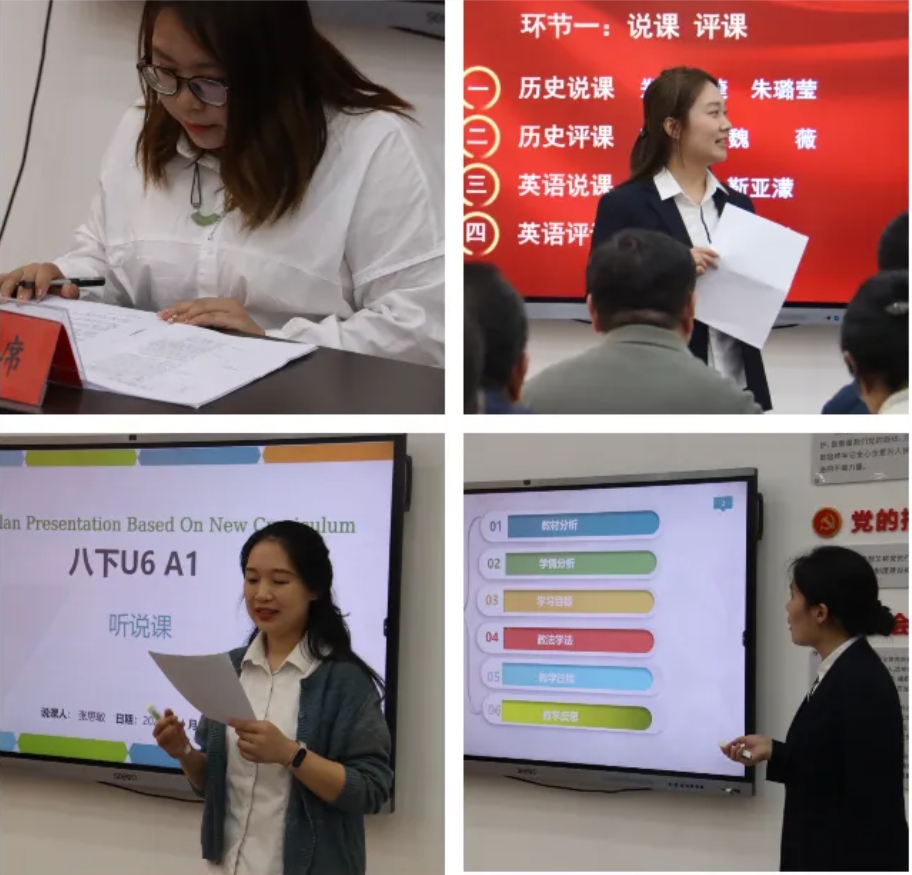 下午的活動(dòng),首先是對(duì)同課異構(gòu)的4節(jié)課進(jìn)行說課與評(píng)課。4位上課教師分別結(jié)合本校教學(xué)模式闡述教學(xué)流程,展現(xiàn)出不同模式和風(fēng)格下的精巧設(shè)計(jì)。