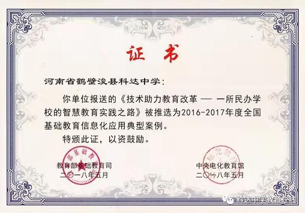 2018年,ESWI智慧教育聯(lián)盟在鶴壁成立、ESWI亮相首屆數(shù)字中國建設(shè)成果展、翌思維實(shí)驗(yàn)校-科達(dá)中學(xué)入選“2016-2017年度基礎(chǔ)教育信息化應(yīng)用典型示范案例集”,全國首批僅有16所……